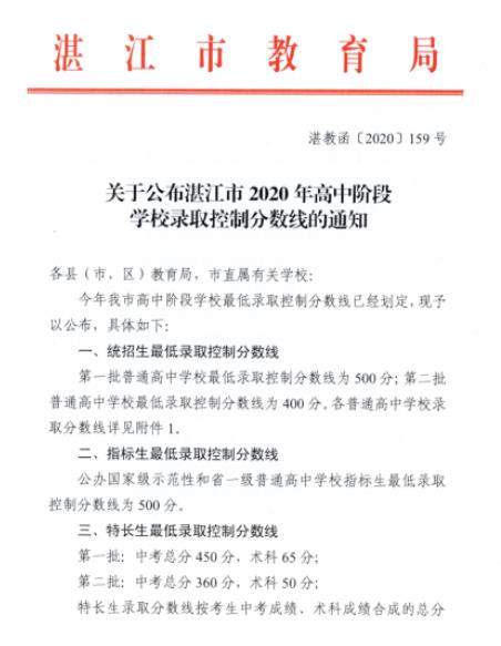 2020年广东湛江中考录取分数线(已公布)