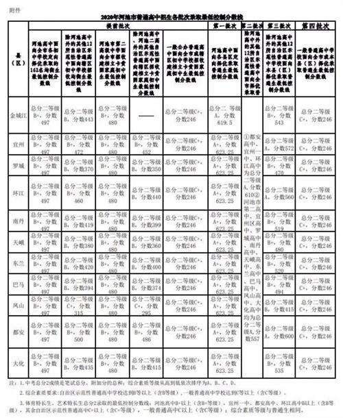 附件:2020年河池市普通高中招生各批次录取最低控制分数线